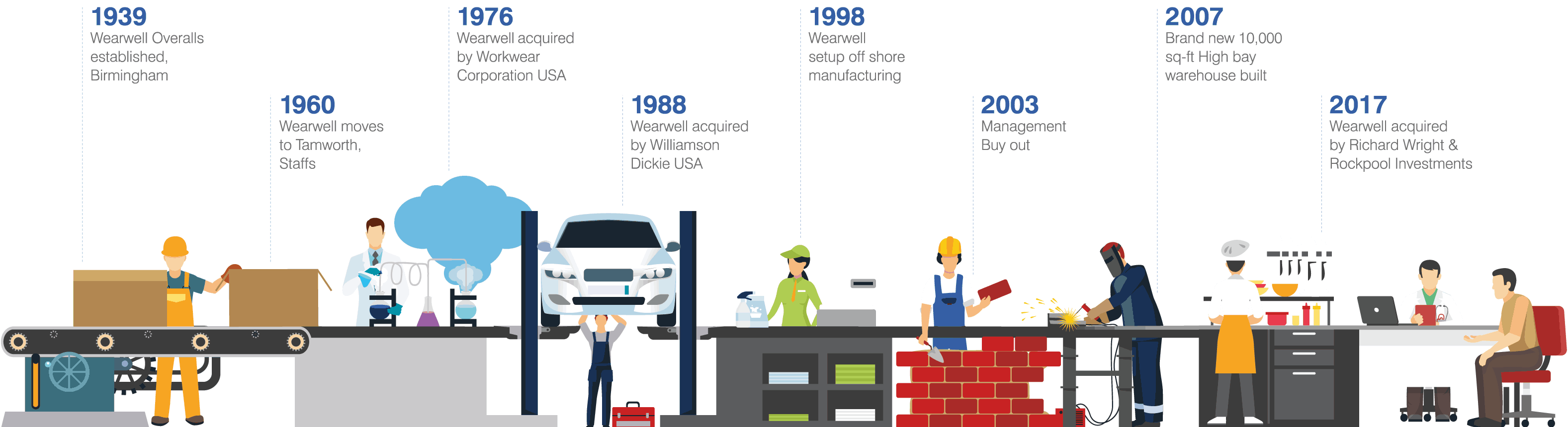 Wearwell has a long and proud history of workwear manufacture that dates back to 1939. Founded in Birmingham, Wearwell was then known as Wearwell Overalls.